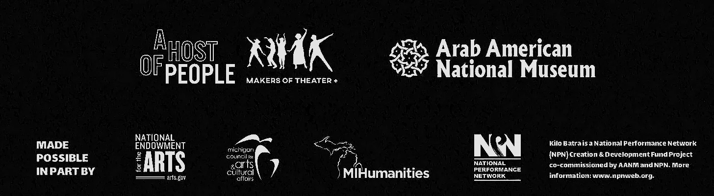 Kilo Batra: In Death More Radiant is a National Performance Network (NPN) Creation & Development Fund Project co-commissioned by the Arab American National Museum and NPN. The Creation & Development Fund is supported by the Doris Duke Charitable Foundation, the Andrew W. Mellon Foundation, and the National Endowment for the Arts (a federal agency). For more information: www.npnweb.org.